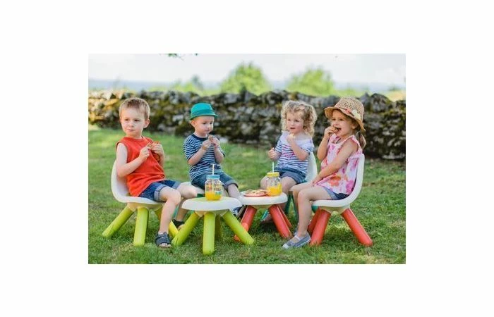 Deze leuke Smoby outdoor kruk ziet er door de dikke rondvormige poten speels uit en nodigt kinderen uit om te zitten. De krukpoten hebben een groene kleur en het zitvlak heeft een vierkanten vorm in de kleuren wit en groen.
