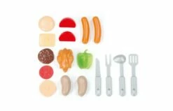 De hamburgers, worstjes, kip, groenten en barbecuebestek zijn slechts enkele van de 17 accessoires die bij deze barbecue geleverd worden.