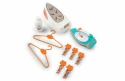 Aan de zijkant van de strijkplank kan er was worden opgehangen met de oranje wasknijpers of aan een kledinghanger. Werkt op 2 x AA batterijen (batterijen zijn niet meegeleverd).