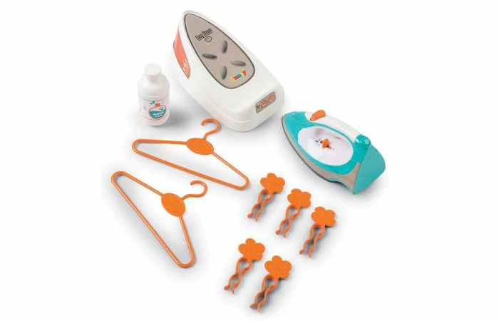 De stroomstrijkijzer maakt een echt sissend stoomgeluid wanneer je op de oranje knop drukt.