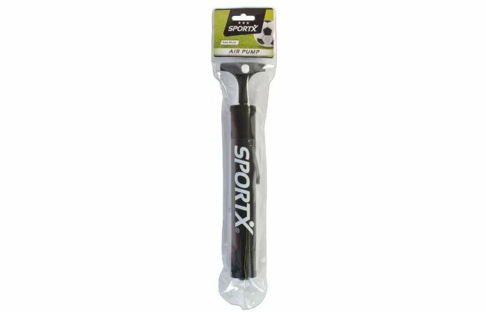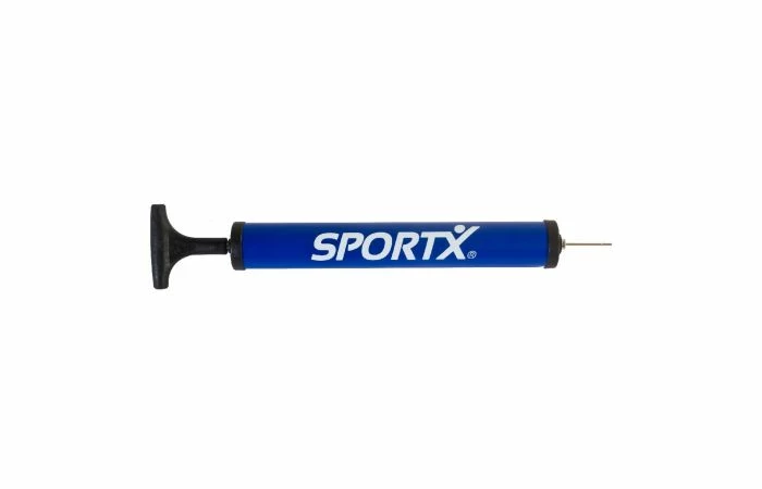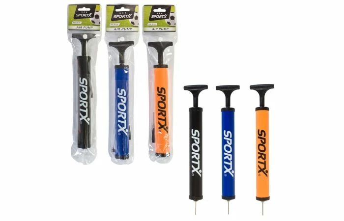 SportX balpomp, in 3 assorti kleuren. Met handig verloopstukje en een naald van metaal. Lengte van de pomp: 30 cm.