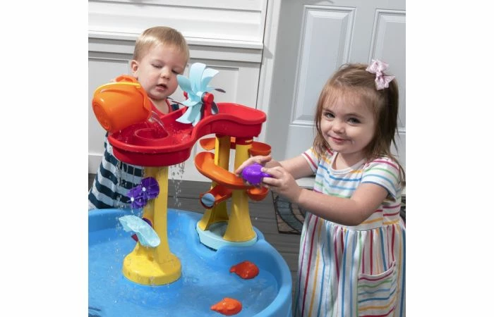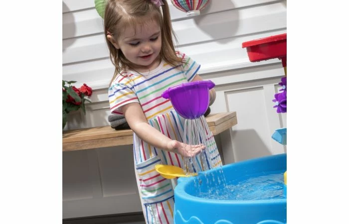 Start het twee laagse watervalspel met de Archway Falls Water Table™ van Step2. Kinderen zullen veel plezier beleven aan het scheppen van het water over de bovenste rand van de watertafel en het waterdoolhof tot leven zien komen als het water over de hellingen stroomt en spint. Het spel met “oorzaak en gevolg” van de waterval houdt de peuters en kleuters bezig, en de zijflipper, speelgoedbootjes en de zee-beestjes moedigen aan om te delen. Een geweldige manier om de hele dag door te spelen.