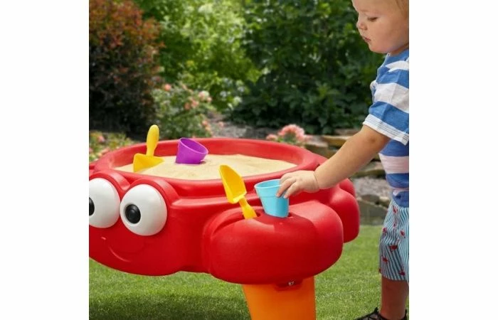 En is het nou heerlijk warm buiten? Vervang dan het zand eens door schoon water! En geef een extra dimensie aan deze mooie Crabbie Zandtafel van Step2