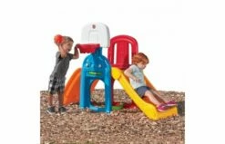 Kleine atleten zullen zich zeker vermaken als ze klimmen, dunken, glijden, schoppen en kruipen met de Step2 Game Time Sports Climber. Kleintjes kunnen met de ingebouwde basketbalringen basketbal spelen, het gat van de doorkruipruimte als voetbaldoel gebruiken en de punten bijhouden op het scorebord. Kinderen ontwikkelen hun grove motoriek door de ladder op te klimmen en van de glijbaan te glijden. Eindeloos speelplezier met het Game Time Sports klimtoestel!