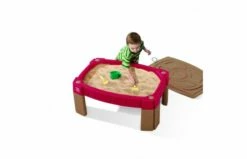 Ideaal voor kleinere speelruimtes. Afsluitbaar deksel om insecten en huisdieren buiten de bak te houden Het deksel heeft een meegegoten racebaan voor nog meer speelplezier. Inclusief 2 schepjes, 1 emmertje en 2 harkjes