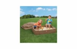 Deze Step2 Play & Store Sandbox met deksel is leuk met een eigentijds ontwerp en veel ruimte voor meerdere kinderen om te spelen. Het helpt peuters hun zintuiglijke vaardigheden te ontwikkelen terwijl ze buiten zand opgraven en kastelen bouwen. Een duurzame zandbak is een geweldig speeltje voor een fantasierijk spel terwijl kinderen doen alsof ze begraven schatten zoeken op een verlaten eiland!
