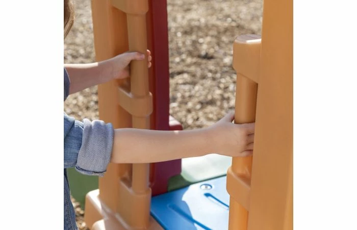 Leuk kunststof speelhuisje inclusief 2 glijbanen; ideaal voor je kleintje die geen genoeg kan krijgen van klimmen en klauteren. Door het compacte formaat past dit klimtoestelletje in elke tuin of zelfs binnen. Aan een zijde van het speelhuisje is een tra bevestigd en aan de andere zijde een klimmuur. Het maximale draaggewicht van het kunststof speelhuisje is 82 kg.