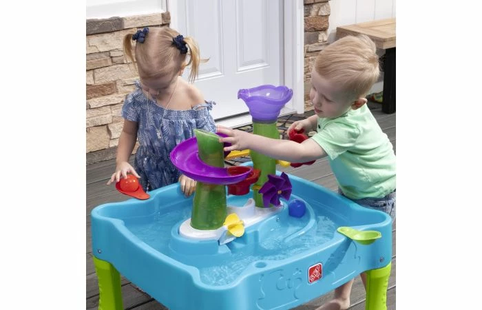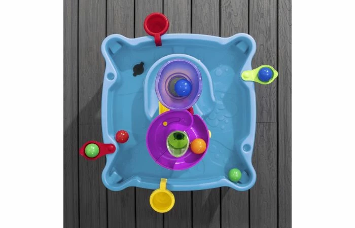 - Het grote, open ontwerp zorgt voor een leuk sociaal spel met meerdere peuters die tegelijk om de watertafel kunnen spelen.