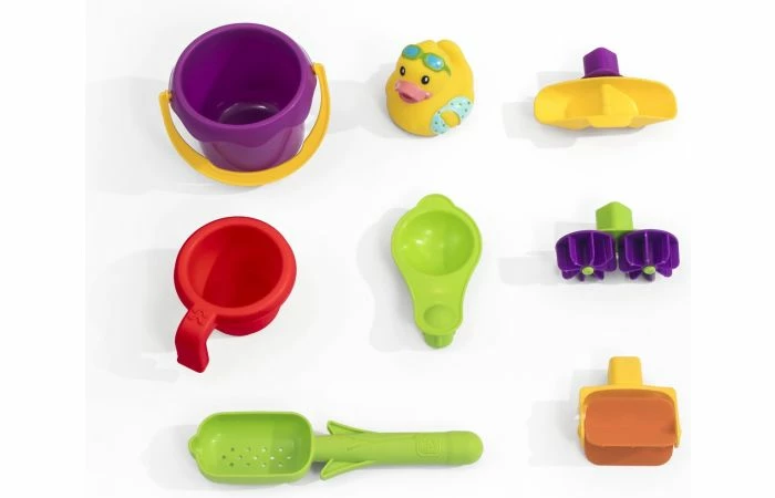 - 8-delige accessoire-set bestaande uit een schepje, wateremmer en rubberen eend