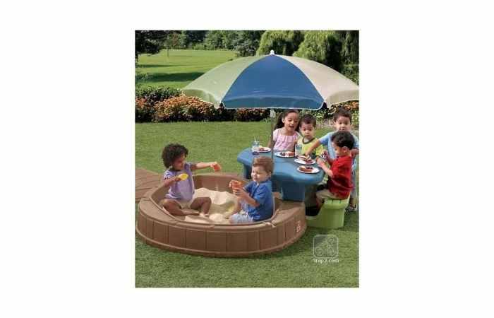 De Step2 Naturally Playful® Summertime Play Center wordt de nieuwe hangplek voor kinderen in je achtertuin. Dit twee-in-één activiteitencentrum kan zintuiglijke en sociale vaardigheden verbeteren wanneer kinderen in de zandbak spelen en samen snacks eten aan de picknicktafel. Creativiteit en fantasiespel worden gestimuleerd als kinderen zandkastelen kunnen maken en net als piraten schatten kunnen opgraven. Groepsspel is nu leuker dankzij het Summertime Play Center!