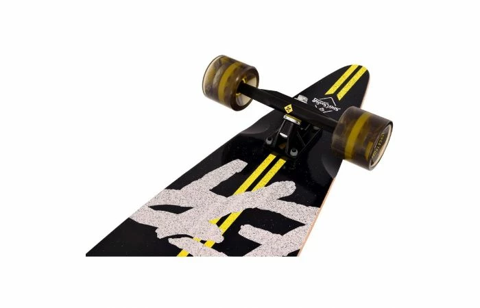 Street Surfing Pintail Road Line. Met dit klassieke skateboard kun jij al jouw tricks en slides oefenen! Doordat het skateboard niet zo groot is, is hij extra wendbaar. Hij heeft een stevige grip, waardoor het veilig is om op dit board te rijden. Deze Street Surfing Longboard Pintail Woods heeft een deck van 9-laags esdoorn en wielen voorzien van ABEC 9 lagers.