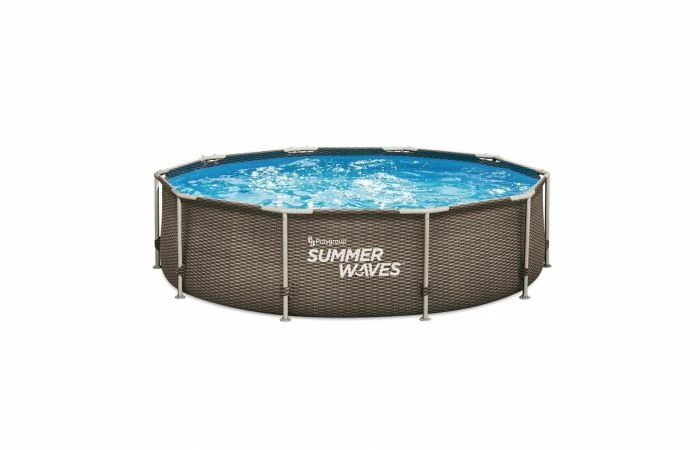 Summer Waves Zwembad Active Frame 305 x 76 cm in de kleur Dark Double Rattan. De buitenkant van het zwembad heeft een donkerbruin rotan patroon, ook de frames zijn bruin.