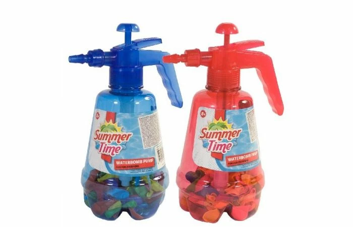 Waterballonnen vullen zonder kraan! Vul de fles met water, neem ‘m mee en je kunt je waterballonnen ter plekke vullen met deze Summertime pompfles! Wordt 3 assorti kleuren geleverd met 100 ballonnen. Geschikt vanaf 8 jaar.