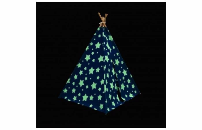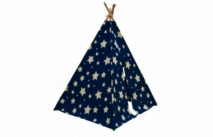 Deze gave tipi tent heeft een mooie donkerblauwe kleur met heldere sterren die in de nacht licht geven. Deze Cosmo tipi tent is eenvoudig op te bouwen en voelt als een magische plek zodra de sterren beginnen te stralen.