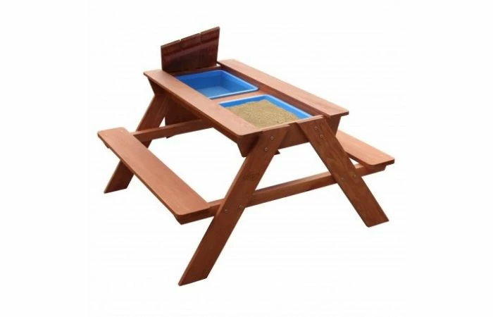 Sunny Dave Zand & Water Picknicktafel Bruin. Producttype: Zand- en watertafel, Geschikt voor: Buiten, Aanbevolen geslacht: Jongen/meisje, Aanbevolen leeftijd (min): 3 jaar, Aanbevolen leeftijd (max): 10 jaar, Watercapaciteit (max): 4 l, Maximale zitbelasting: 70 kg, Materiaal: Kunststof, Hout, Kleur van het product: Bruin. Gewicht: 9,5 kg