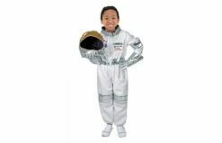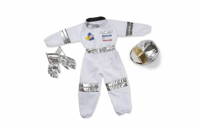 Inhoud: ééndeligpak, austronautenhelm, zilveren handschoenen (stretch) en een herbruikbaar naamlabel
