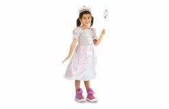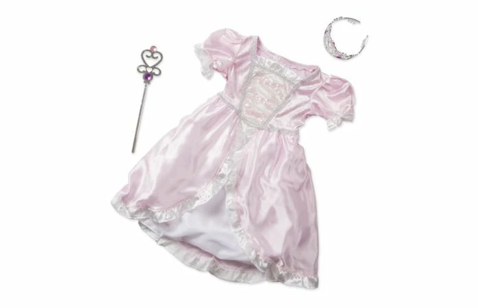 – satijnen jurk inclusief zilveren toverstaf en kroon