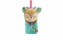 Druk op het neusje om lieve zinnetjes, rustgevende melodietjes, gezongen liedjes en geluiden te horen. Kan gebruikt worden als knuffeldoekje met bijtring, knuffelhertje en fopspeenhouder. Weet je waar ik van hou? Knuffelen met jou! Wordt inclusief 3 knoopcelbatterijen geleverd in try-me verpakking.
