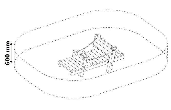 - Valhoogte van dit toestel is 60cm. Als ondergrond adviseren wij gras, aarde, zand, snippers of schors. Op harde ondergrond adviseren wij rubbertegels van 25 mm dik.