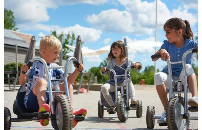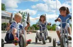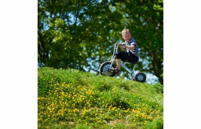 Met deze stoere off road driewieler rijd je gemakkelijk over heuveltjes of over andere oneven oppervlaktes. De driewieler maxi off road is robuust, veilig en duurzaam. Frame van buizenstaal, zonder scherpe hoeken of kanten. Achter deze driewieler kan een aanhanger gekoppeld worden met de veiligheidskoppeling.