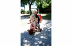 Race over het plein met deze oerdegelijke driewieler. De driewieler midi is robuust, veilig en duurzaam. Frame van buizenstaal, zonder scherpe hoeken of kanten. Het verschil in grootte zit vooral in de afstand van het zadel naar de trappers en het stuur. Achter elke driewieler kan de aanhanger gekoppeld worden met de veiligheidskoppeling.