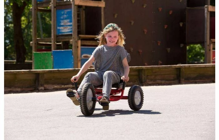 De Racer van Winther is een heel bijzonder vervoermiddel. Rijden doet hij door met de voeten het voorwiel te laten ronddraaien. De twee hengsels aan de zijkanten kan het kind heen en weer bewegen waardoor hij met de achterwielen kan sturen. Het zitje is verstelbaar zodat er altijd een ideale zitpositie is.